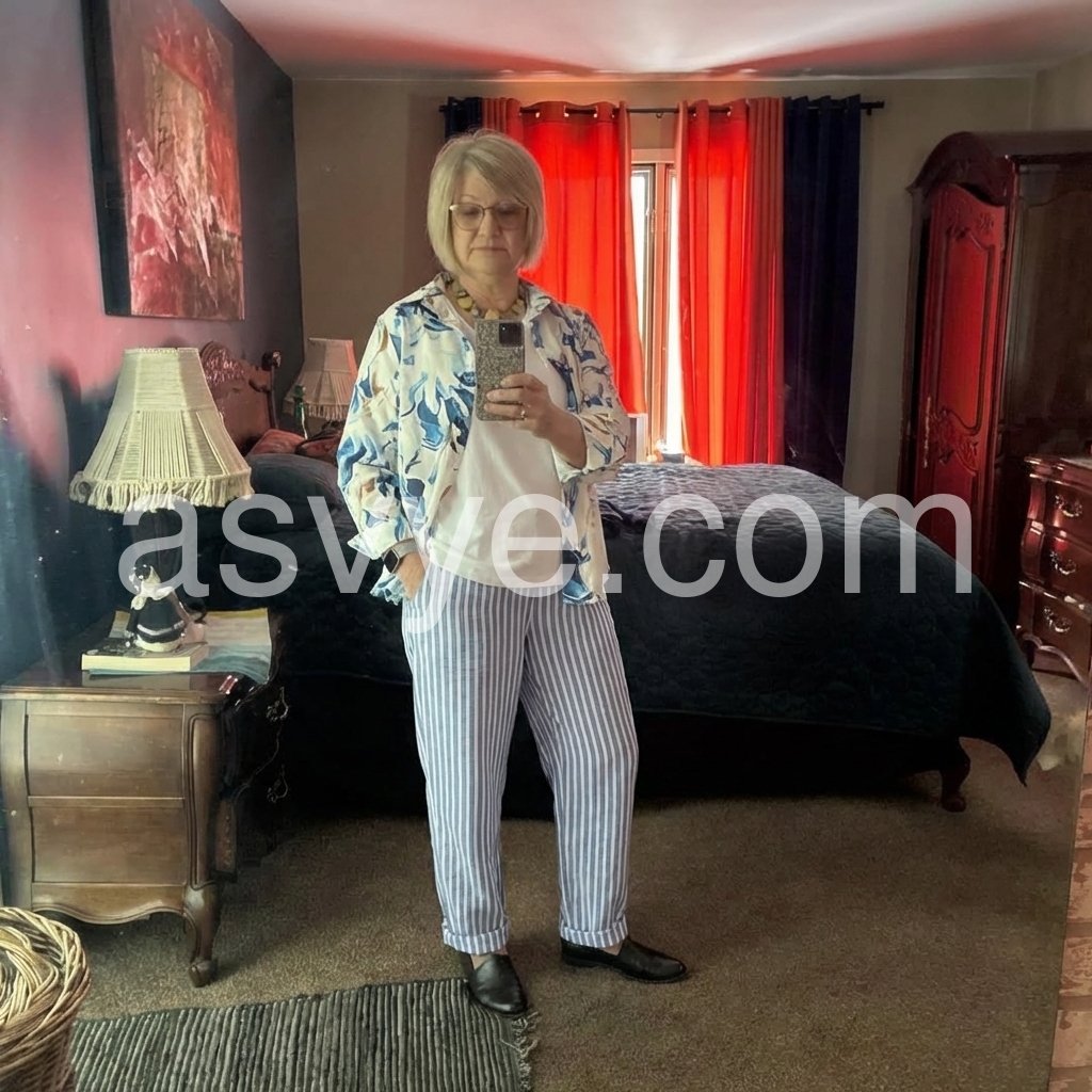 I was worried the baggy style might make me look bulky, but the tailoring is surprisingly flattering. The vertical stripes definitely help! They are super breezy for the hot southern summers. Will be buying in other colors if available.