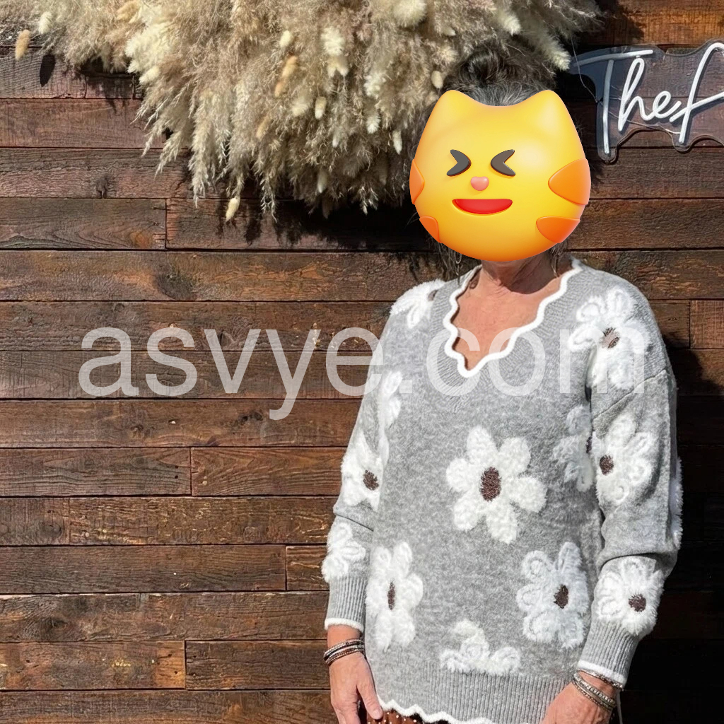 I’m really impressed with how well this sweater drapes and how comfortable it feels. The V-neck adds a subtle, flattering shape, and the sleeves sit nicely without feeling tight. The grey base color makes the whole print look extra vivid. I’ve worn it with my denim and it looks effortless—like I tried to style it, but without any effort. Definitely a go-to piece for cooler weather.