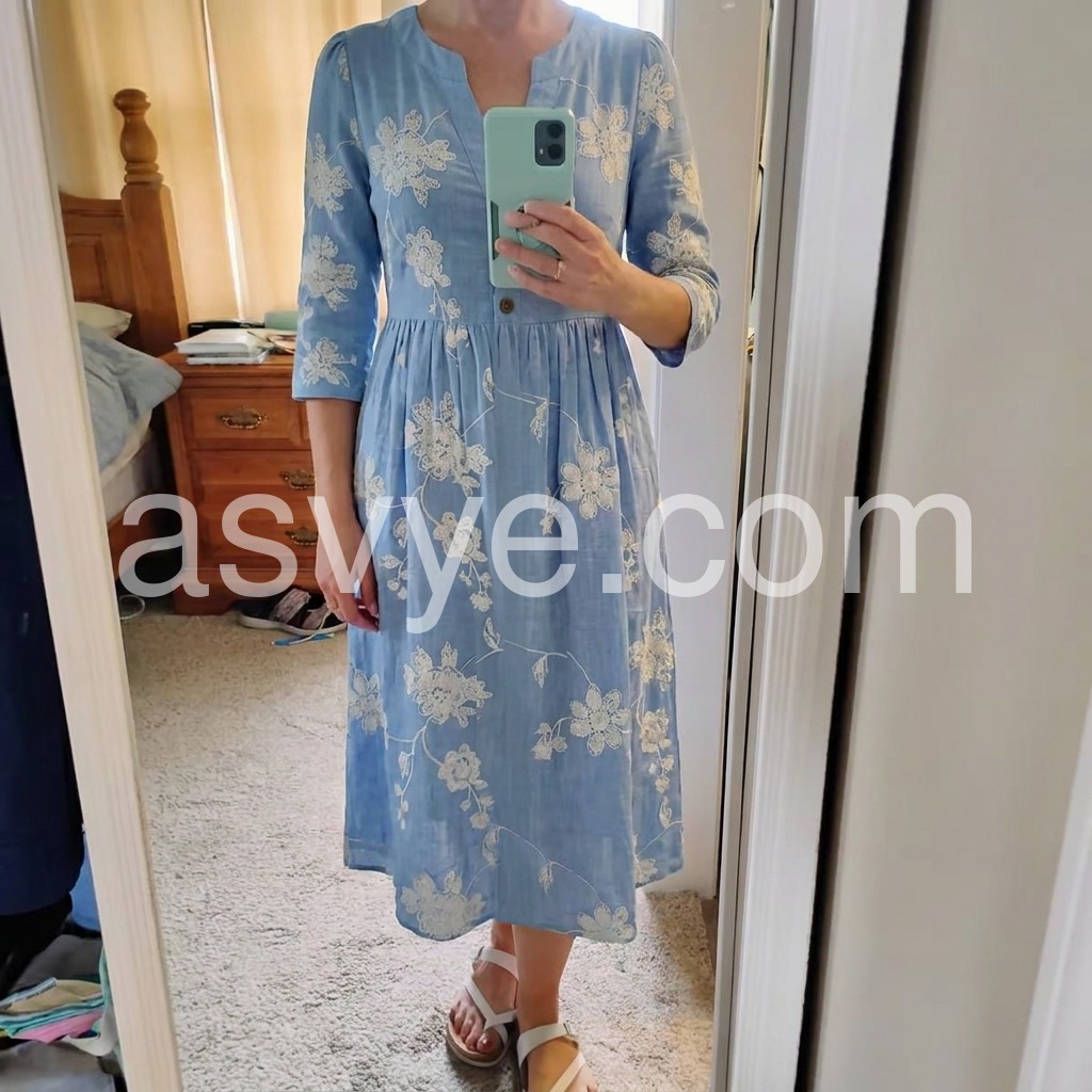 This summer dress is a dream to wear! The cut is incredibly flattering. It’s lightweight, breathable, and perfect for staying comfortable during warm weather while still looking stylish. Pair it with a cardigan and classy sandals or heels, and it’s ready for the office or a polished casual look. This dress is an excellent addition to your summer wardrobe!