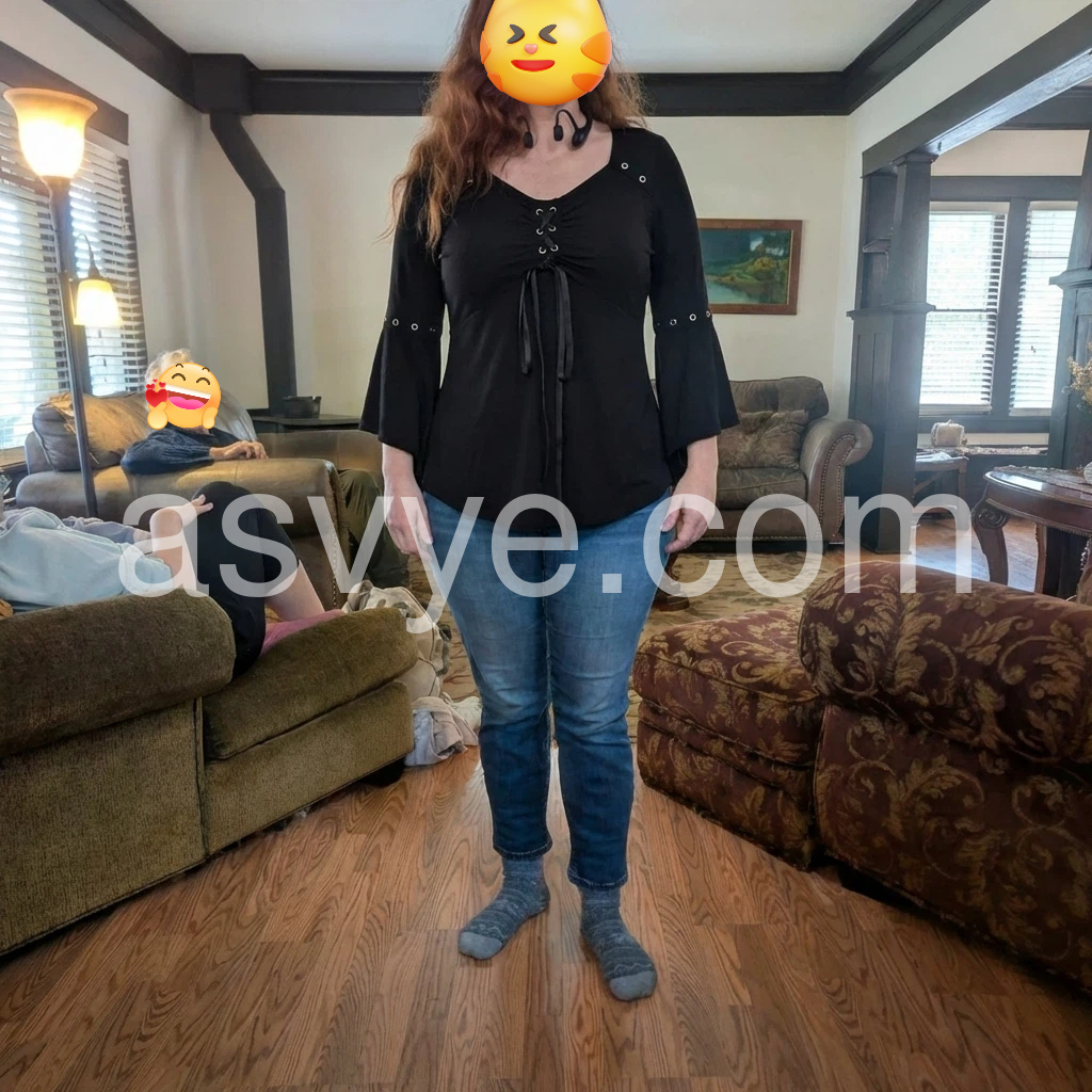 This top is exactly what I needed for a night out! The V-neckline is flattering, and the lace-up ribbon makes it look so elegant. The bell sleeves are flowy and don’t restrict movement at all. The fit is true to size, and the asymmetrical hem adds a stylish touch. I will definitely be wearing this on repeat!