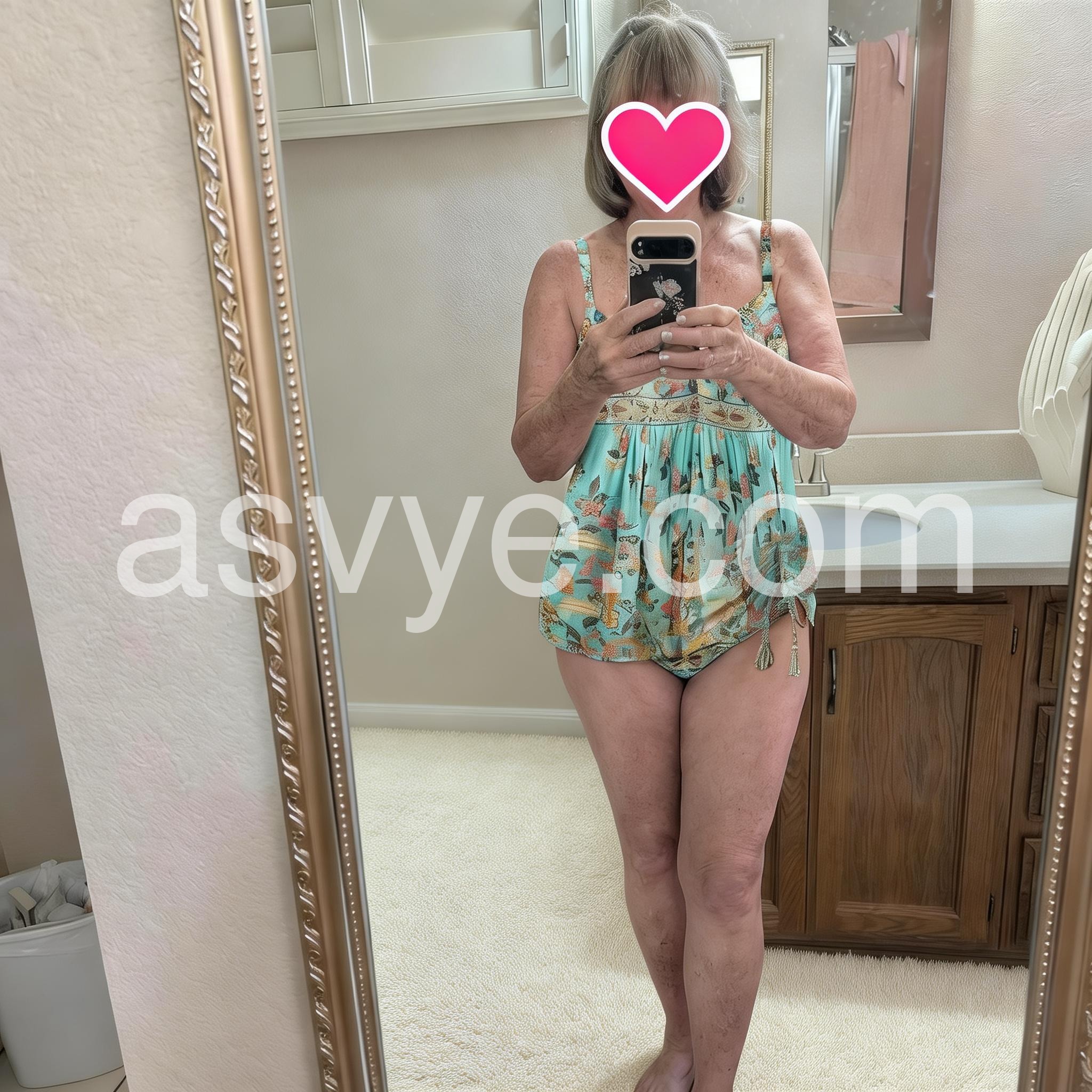 5'5 150lbs 70 year old Medium Bathing suit ... great material, hides stomach area well with style